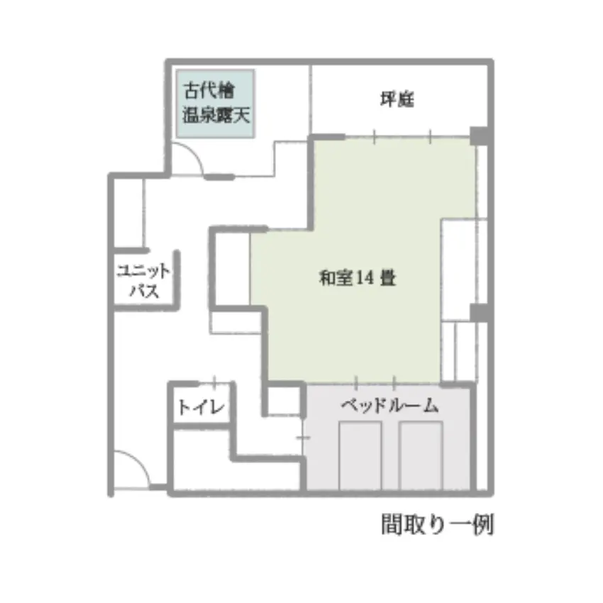 14畳和室+ベッドルーム+古代檜温泉露天風呂