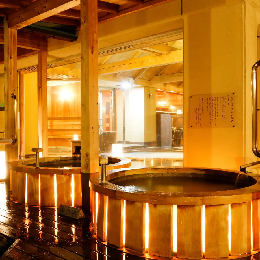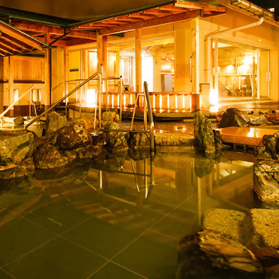 二つの異なる源泉の温泉浴場「まろびね庵」。